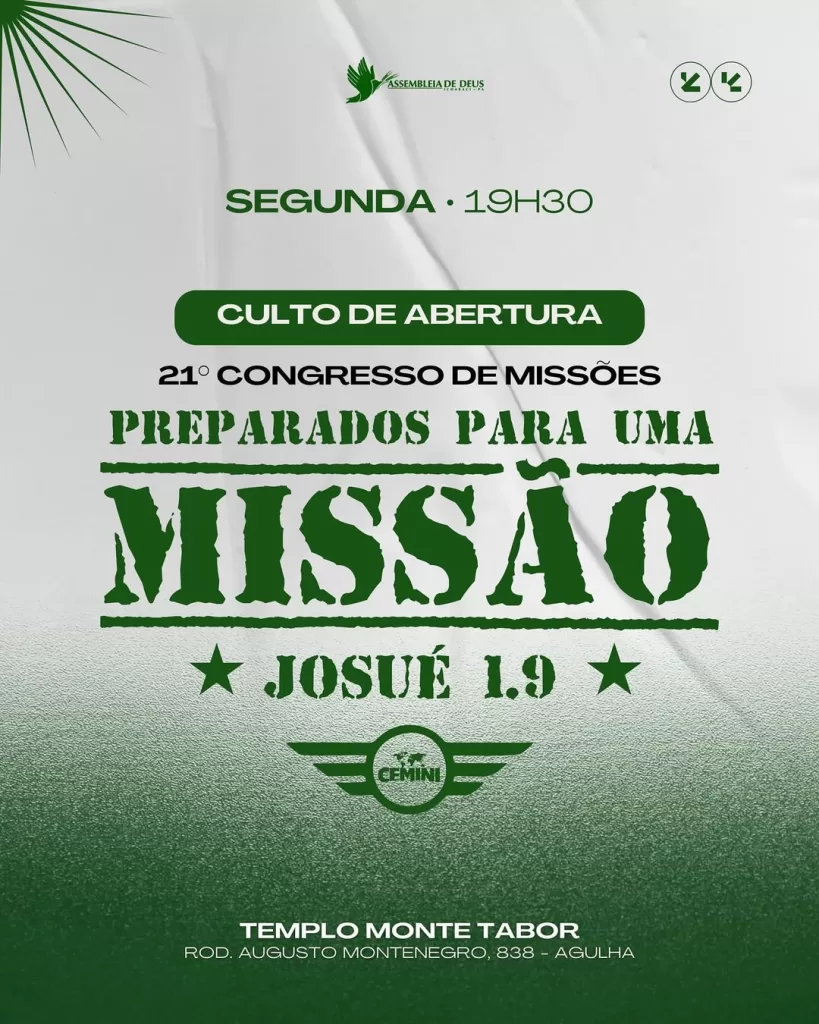 👉 Não fique de fora! Participe do 21° Congresso de Missões e seja preparado para a missão que o Senhor tem para você.