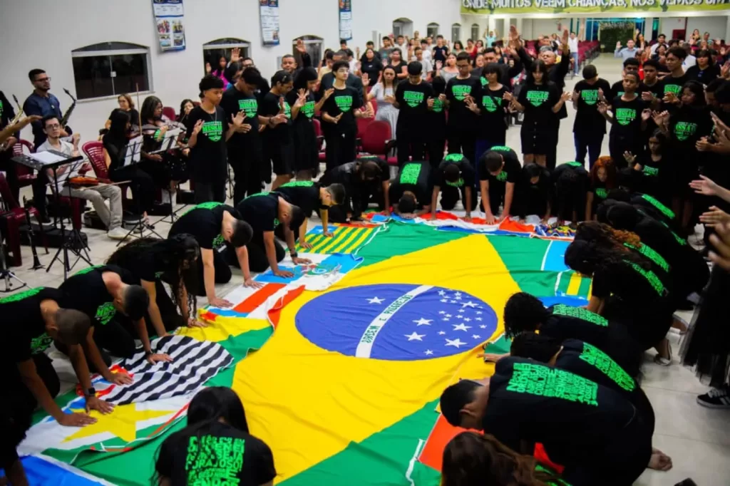 A noite teve início com a participação especial do Conexão Kids, o ministério infantil da igreja. As crianças, conhecidas como os pequeninos do Senhor, realizaram um ato profético representando os povos e as nações através das bandeiras. O gesto simbolizou o chamado de Cristo para “ir por todo o mundo e pregar o Evangelho a toda criatura”, despertando nos presentes o amor pelas almas e o compromisso de cumprir a missão de Deus.