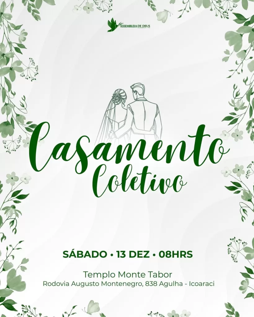 O Templo Monte Tabor, em Icoaraci, será palco de mais um emocionante Casamento Coletivo...