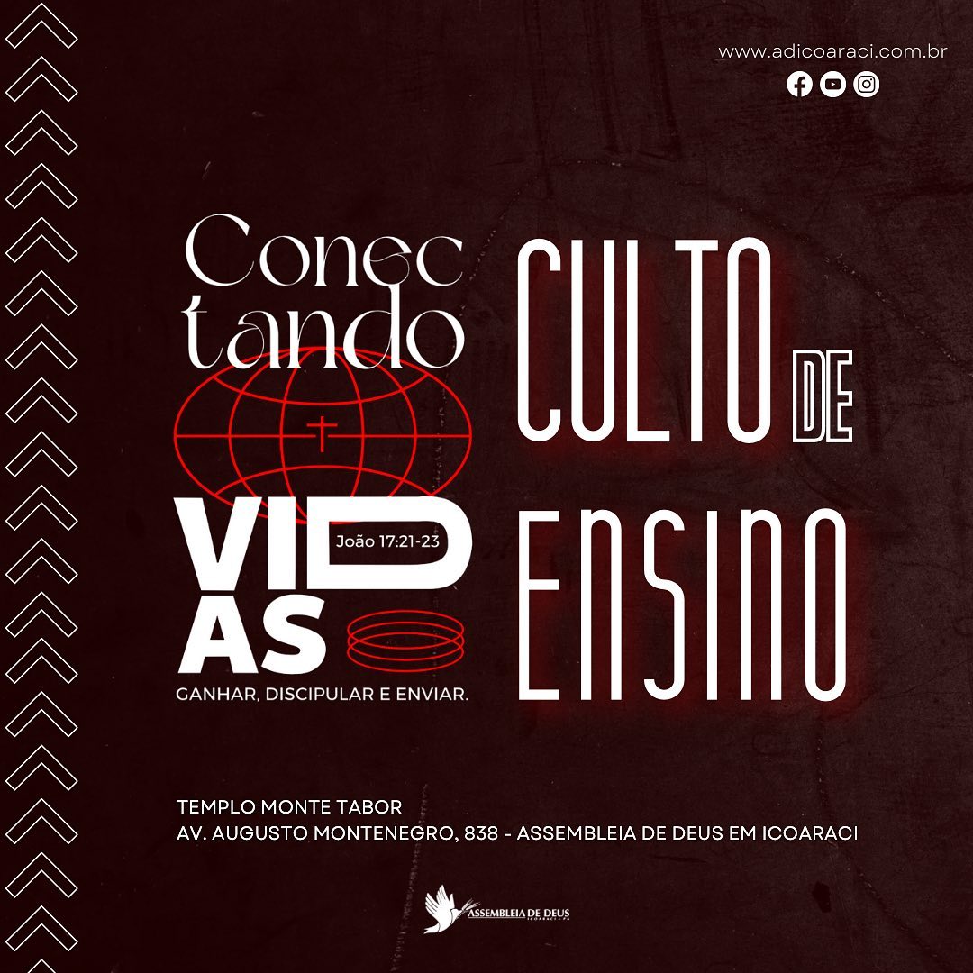 A paz do Senhor! Convidamos você para aprender mais da palavra de Deus no nosso Culto de Ensino. Venha participar desse momento de comunhão e celebração a Deus! Participam as